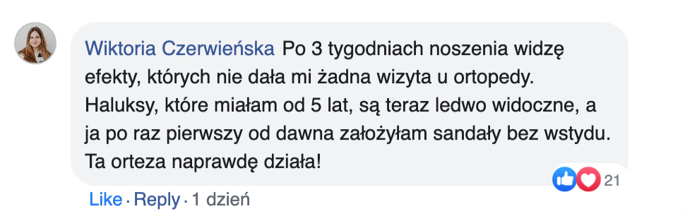 • "To jedna z niewielu ortez, które realnie wpływają na ustawienie osi palucha i stopniowo korygują jego pozycję, a przy tym nie unieruchamiają stopy, dzięki czemu można w niej normalnie chodzić i używać jej w codziennym życiu."